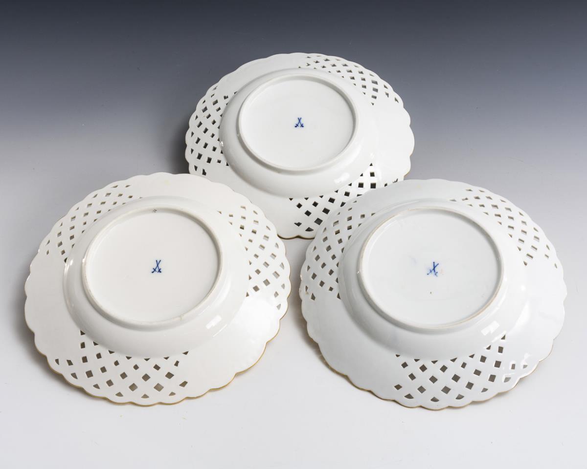 3 Durchbruchteller mit Blumenmalerei. Meissen.