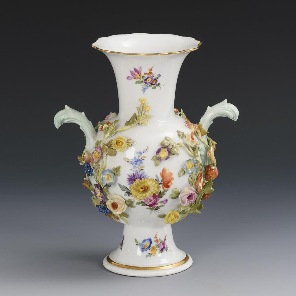 Vase mit Blüten- und Fruchtbelag. Meissen.