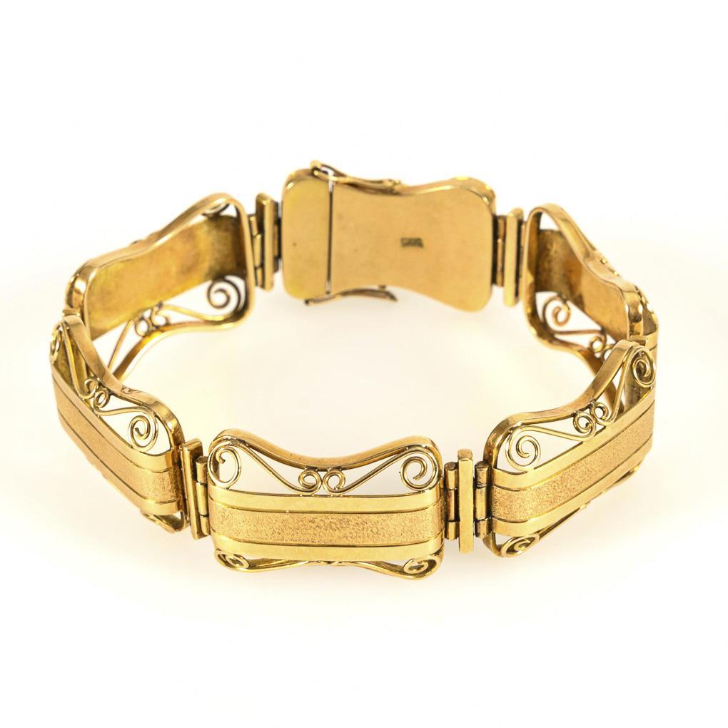 Aufwendig gearbeitetes Gliederband mit Kastenschloss und 2 Achtersicherungen.