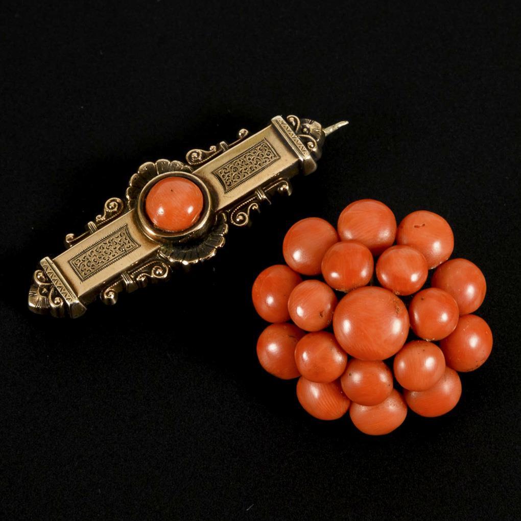 2 Korallenbroschen um 1880/1900.