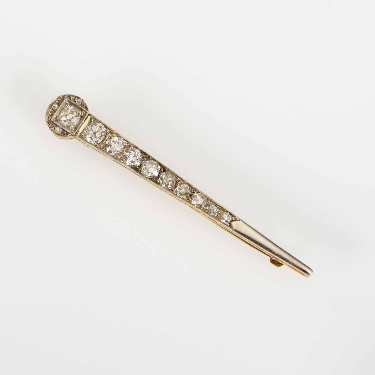 Pfeilförmige Millegriffes-Nadel, besetzt mit 10 Altschliff-Brillanten im Verlauf und 3 kleinen