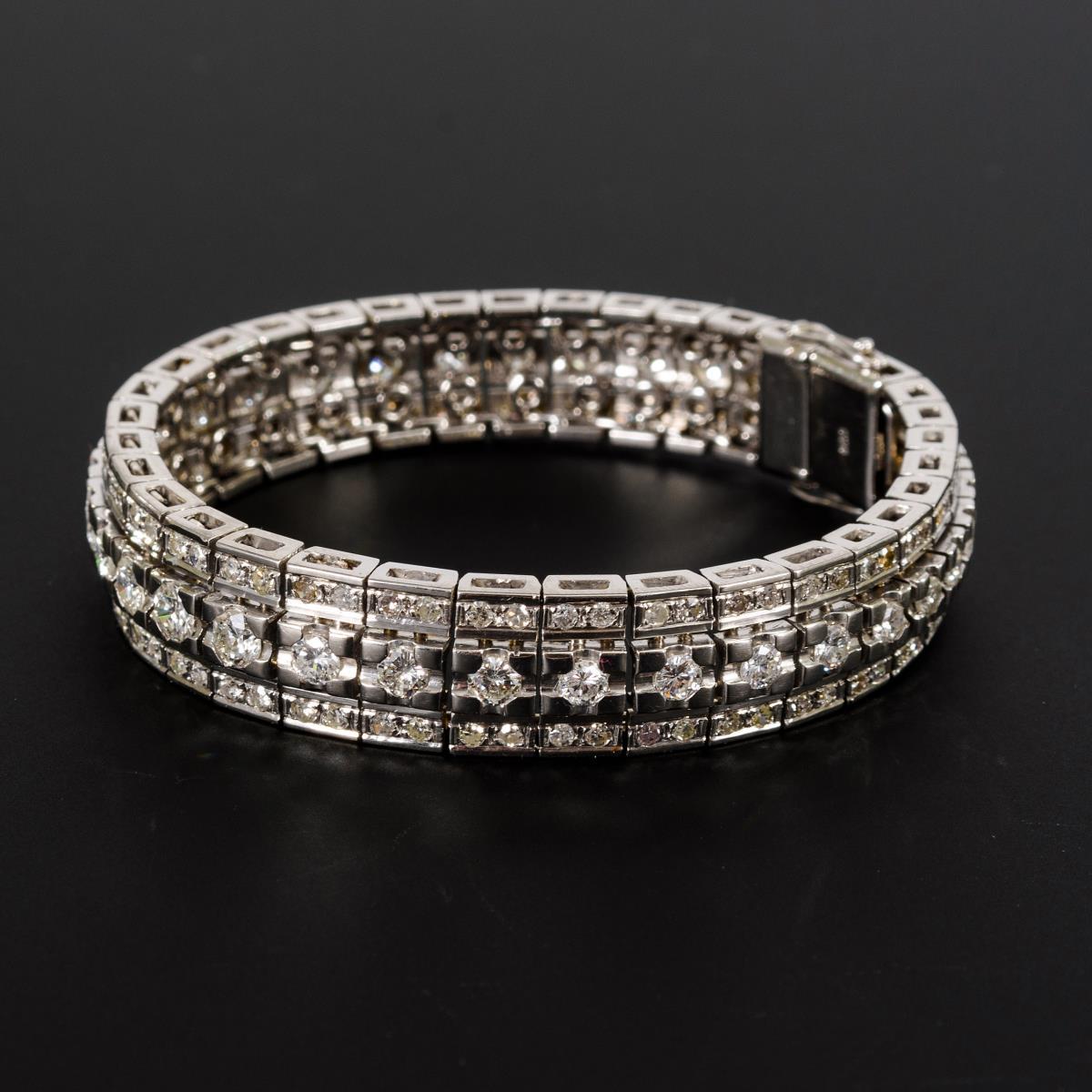 Weißgold 585 gestempelt. Brillanten/Diamanten zus. ca. 3,25 ct. Diamanten zus. ca. 2,84 ct/H-J/PI-PIII. 18,5 x 1,2 cm. 45,2 g.