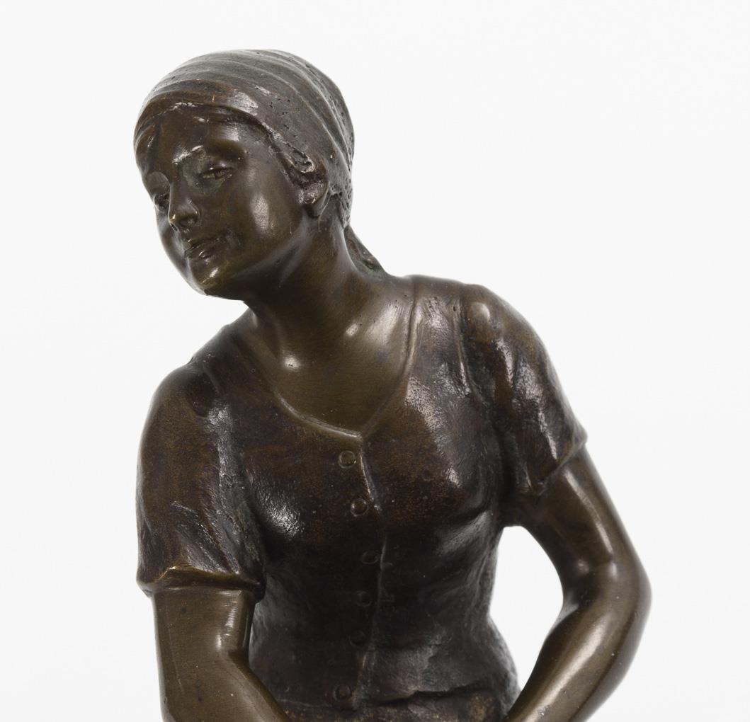 Bronze patiniert, gelber Marmor-Sockel. H 21 / 28 cm.