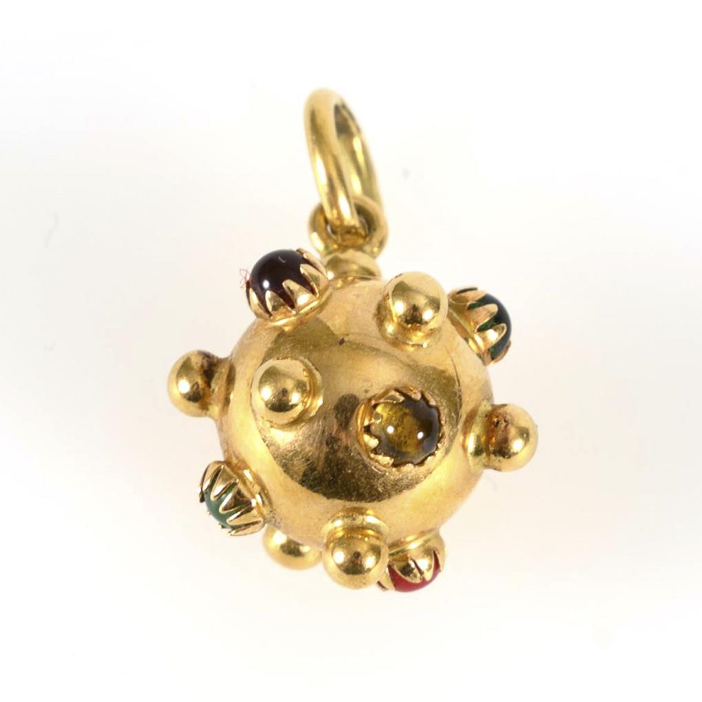 Kugelanhänger mit Granalien und zargengefassten Cabochons.