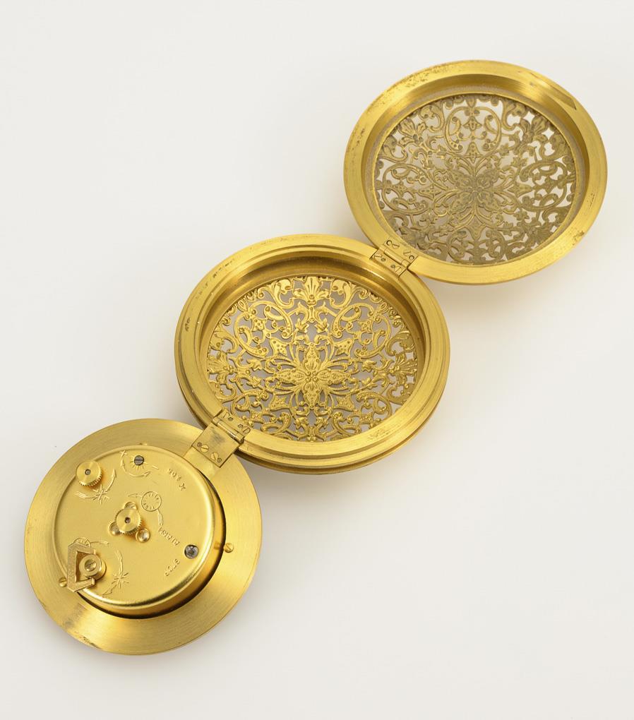 Reisewecker in Art einer Taschenuhr im Barock-Stil. JAEGER-LECOULTRE.