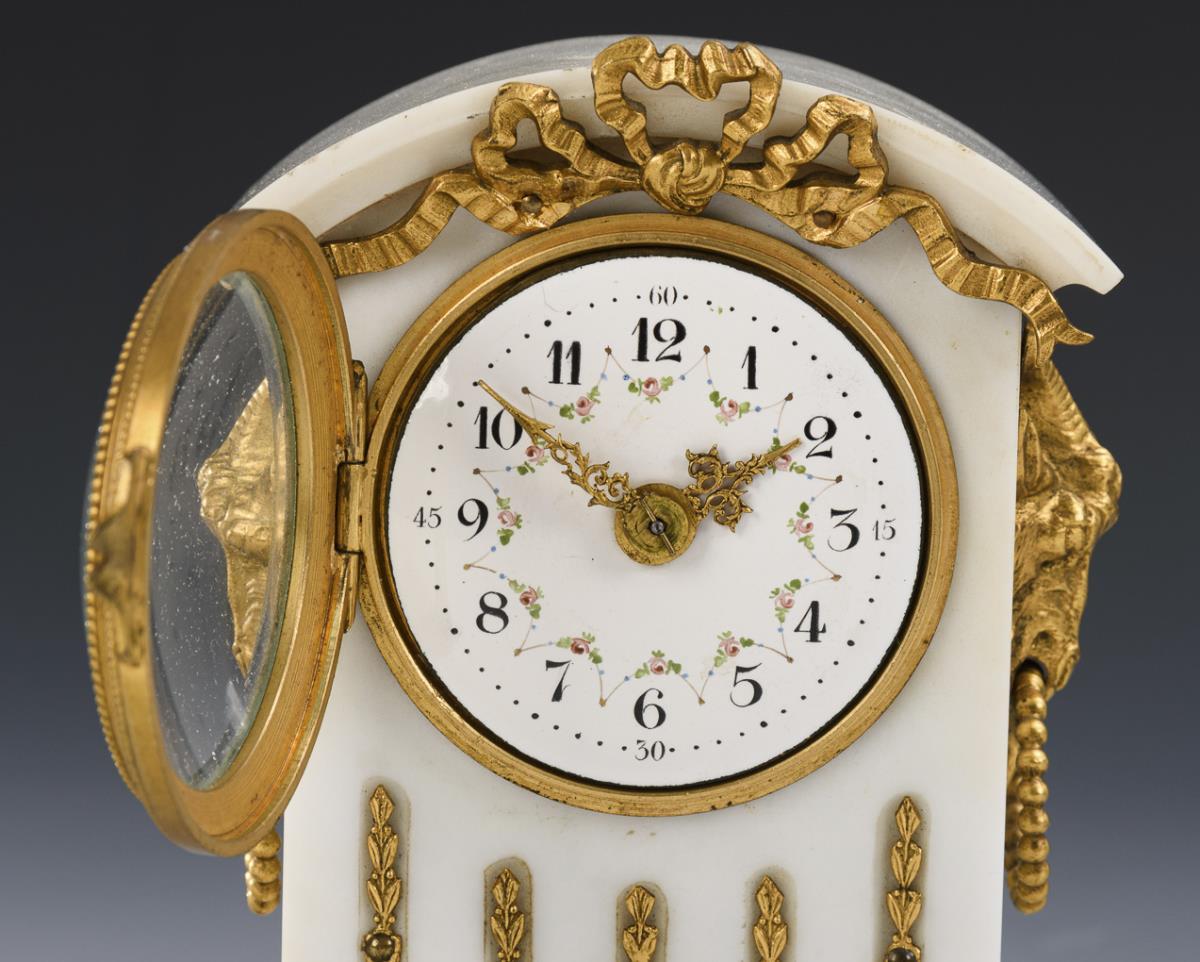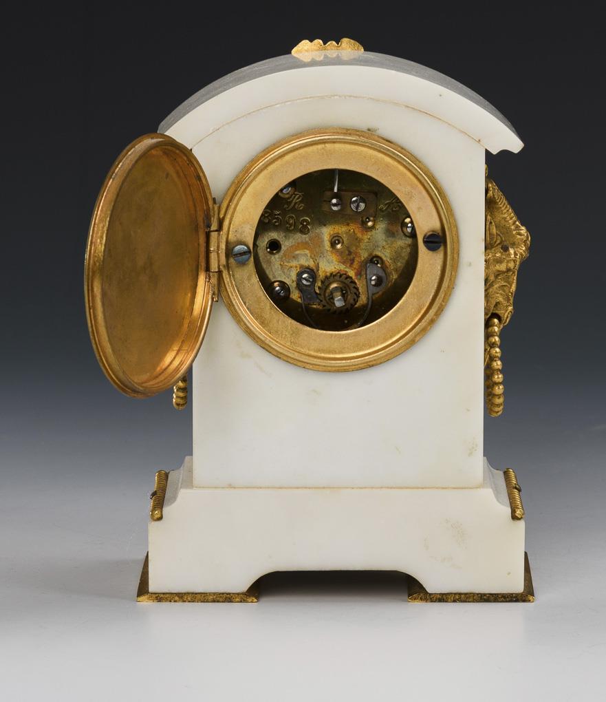 Kleine weiße Tischuhr im Louis Seize-Stil.