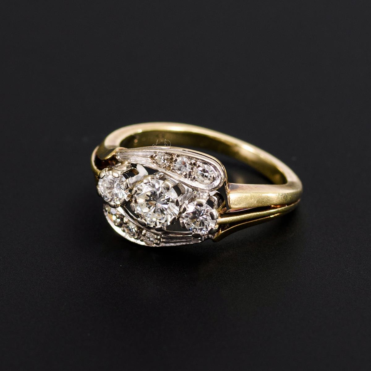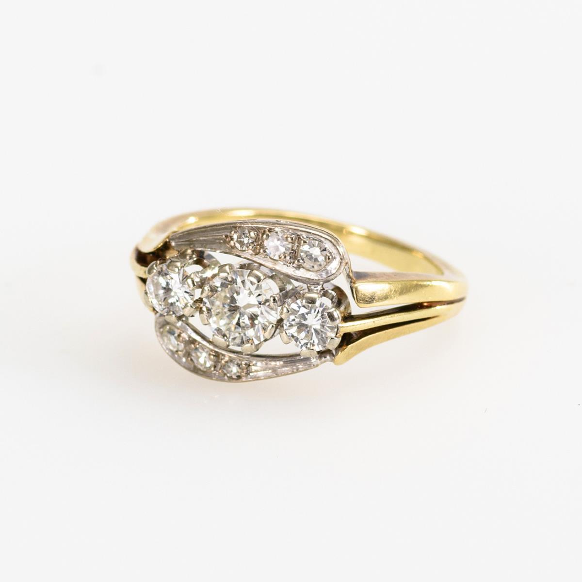Gelbgold 585 undeutlich gestempelt, geprüft.. Brillanten zus. ca. 0,45 ct/H/vsi. Diamanten zus ca. 0,24 ct/H/vsi. Ringgröße 54. 4,5 g.
