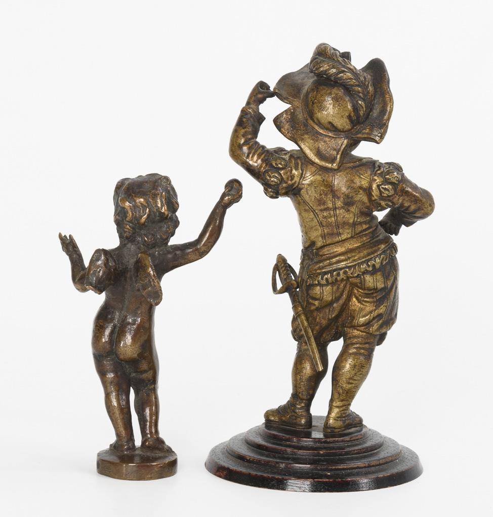 2 Kleinbronzen: Kind in Landsknechtstracht und Amor