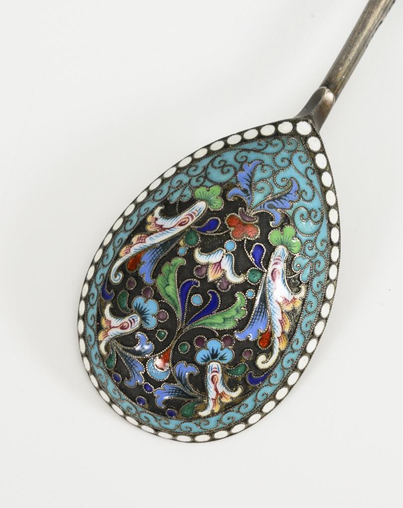 In Blautönen verzierter Cloisonné-Löffel.