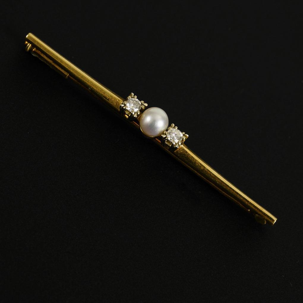 Nadel mit Zuchtperle und Brillanten.