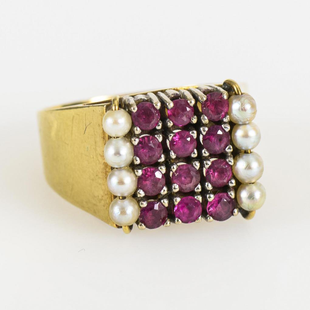 Ring mit Rubinen und Perlchen.
