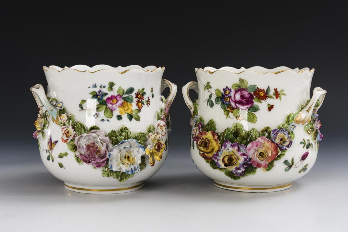 2 französische Cachepots mit Blütenbelag.