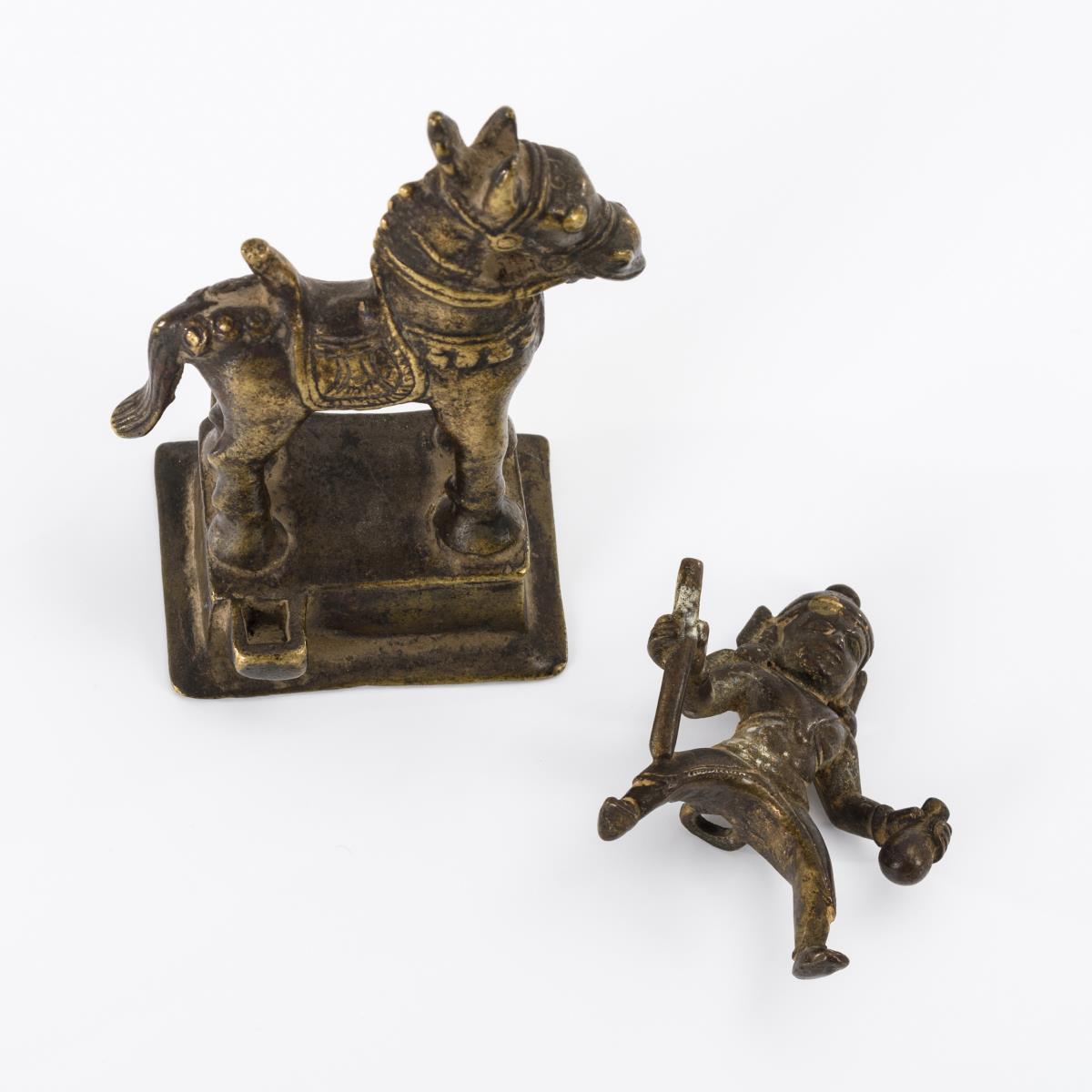 Stab?. Durch eine Öse hinten wird er auf dem Pferd gehalten. Figur steht auf