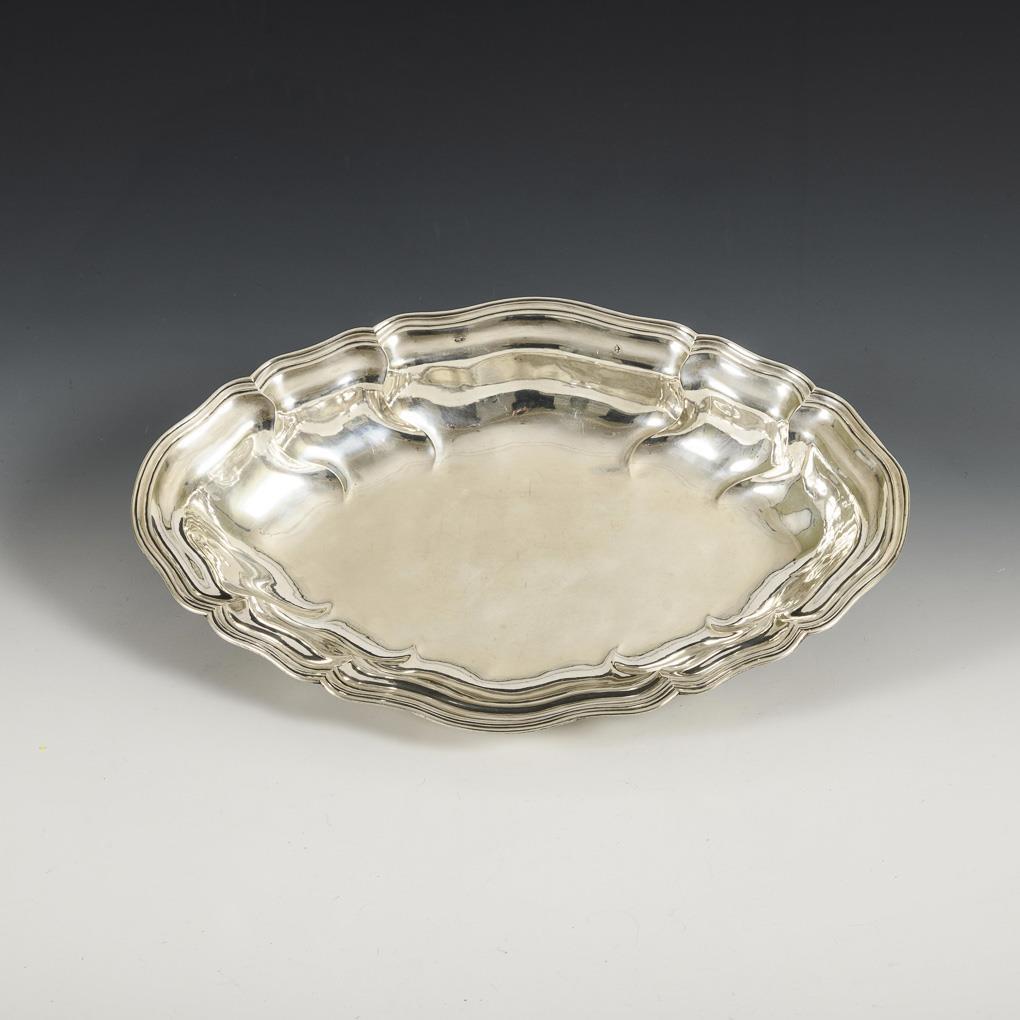 Ovale Schale mit geschweiftem Profilrand. Minimale Gebrauchsspuren.