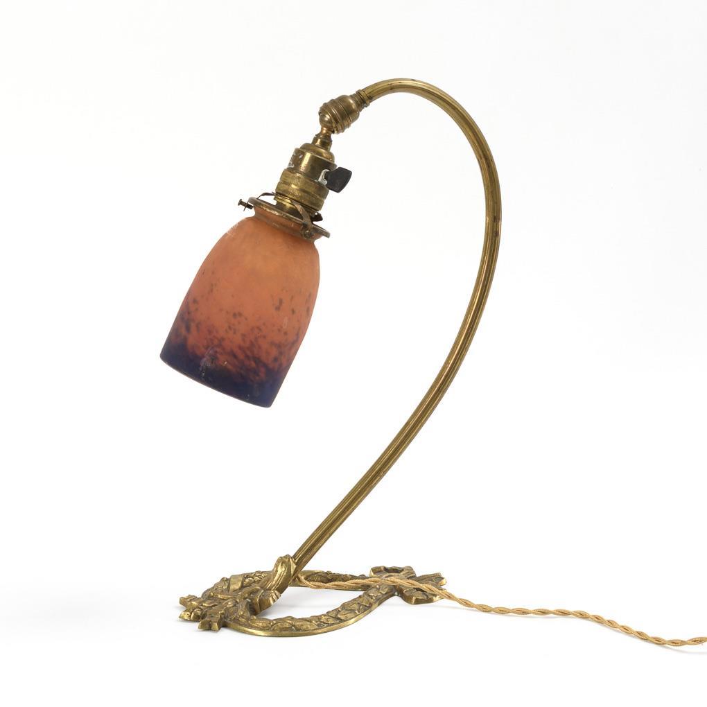 Jugendstil-Schreibtischlampe mit Glasschirm. Muller Fres Luneville.