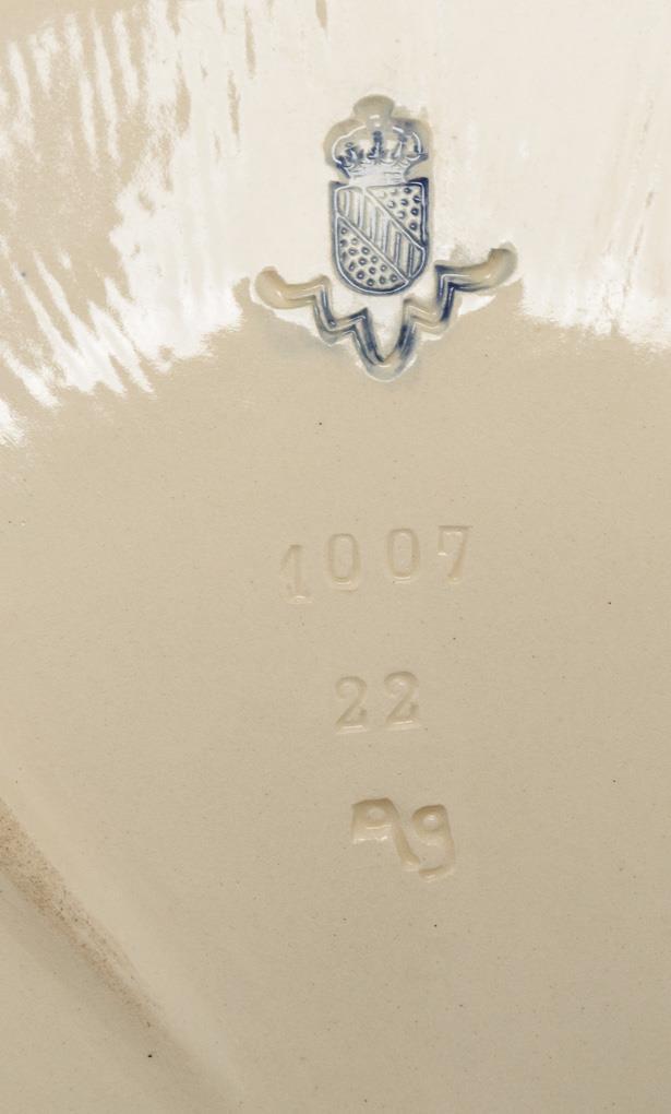 Blau eingefärbte Pressmarke, nach 1908. Entwurf: Wilhelm SAUER (1865-1929), Ausführung: 1908-1923. Modell-Nr. 1007 22 99.