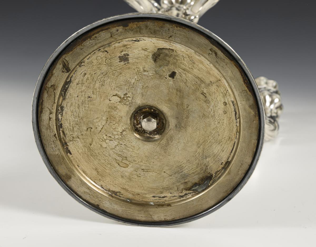 Großer, godronierter Leuchter mit Balusterschaft. Gebrauchsspuren, Füllung innen lose.