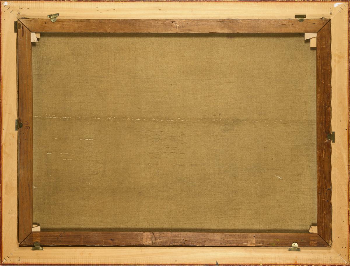 80,5 x 110,5 cm. Gerahmt : 94,5 x 124,5 cm (profilierter Schnitzrahmen).