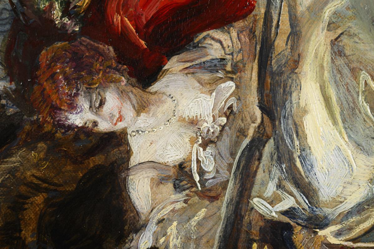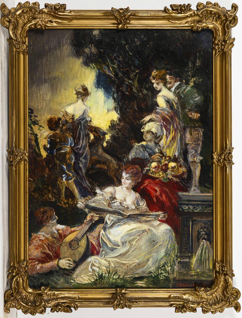 Skizzenhafte Szenerie mit edler Gesellschaft im Park, welche wohl als Entwurf für ein Fresko oder größeres Gemälde angefertigt wurde.