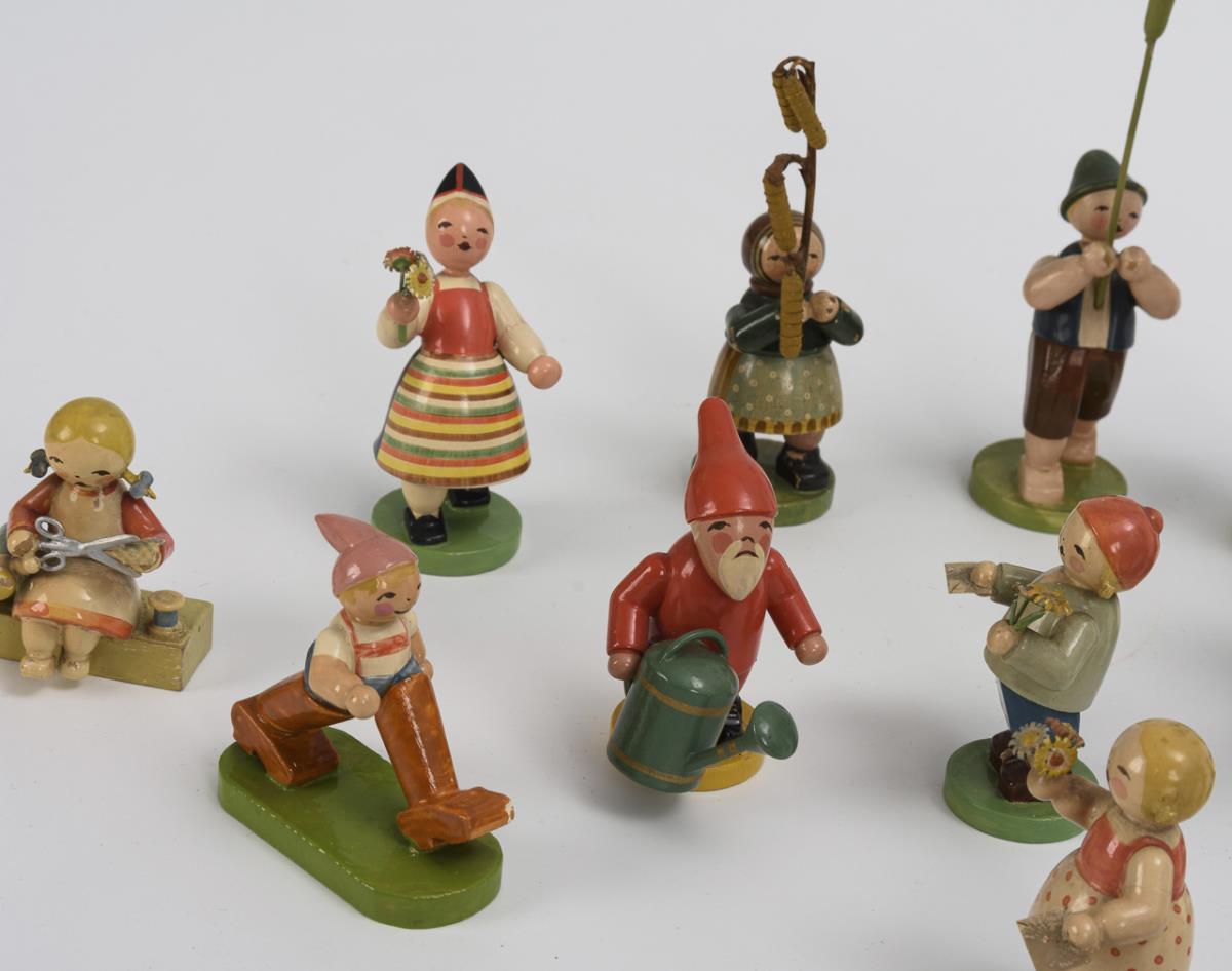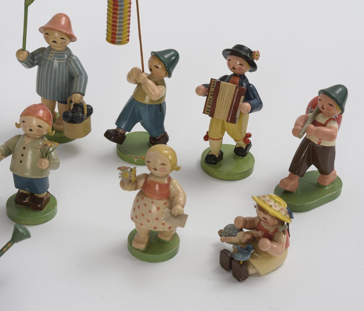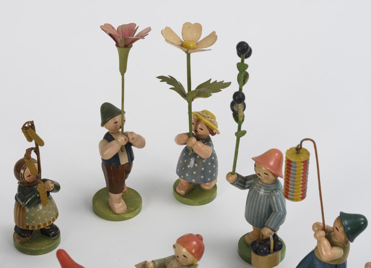 4 Blumenkinder, 1 Laternenkind, 1 Zwerg und verschiedene andere Figürchen. Wenige winzige Defekte.