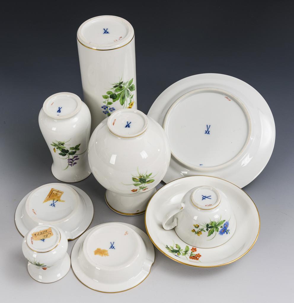 4 Vasen, Gedeck und 2 Ascher mit Feldblumendekor. Meissen.