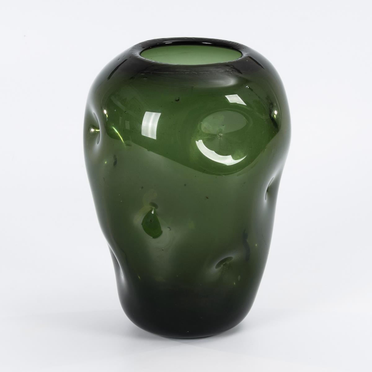 Balustervase mit zwölffach gedellter Wandung, ausgekugelter Abriss. Kratzspuren.