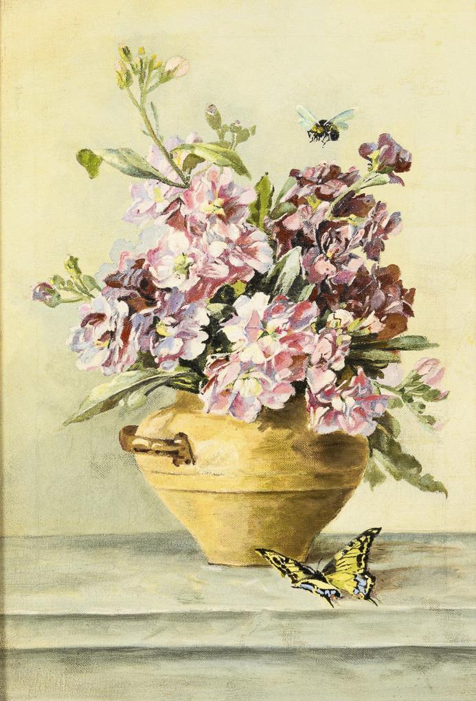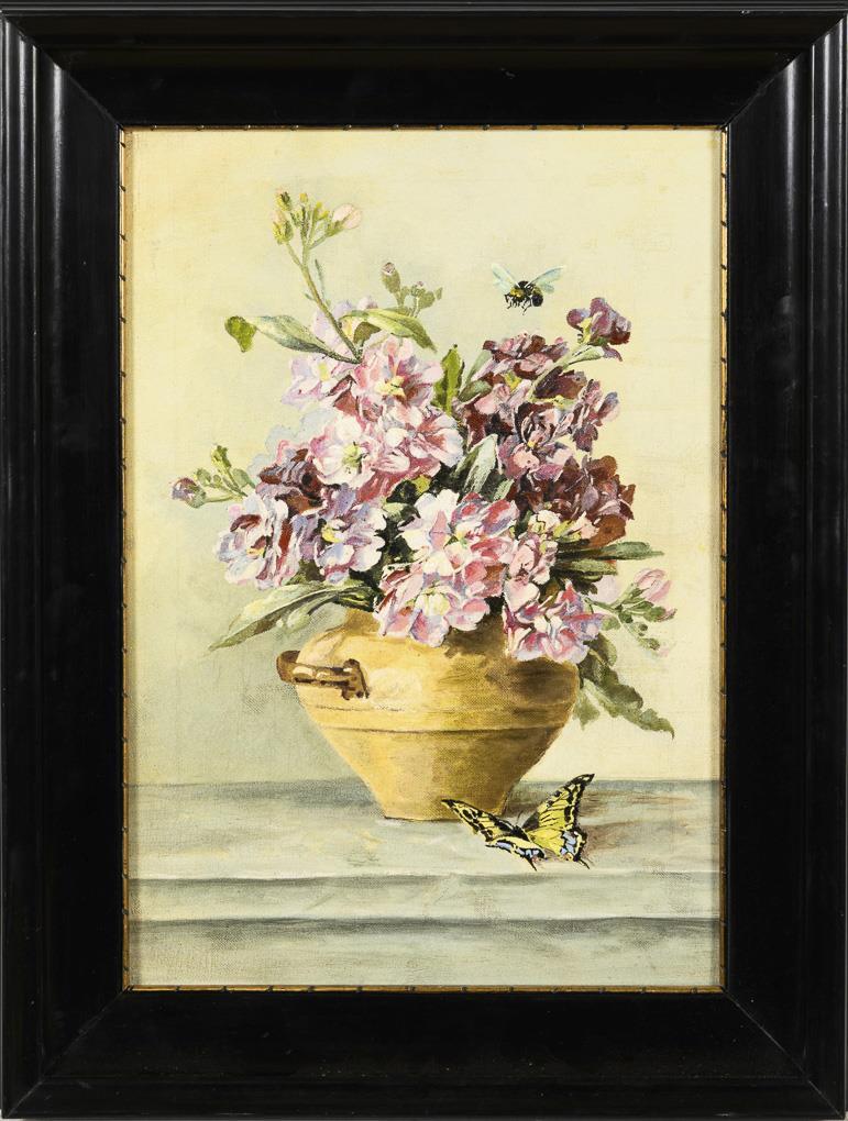 Blumenstillleben mit Schmetterling und Hummel