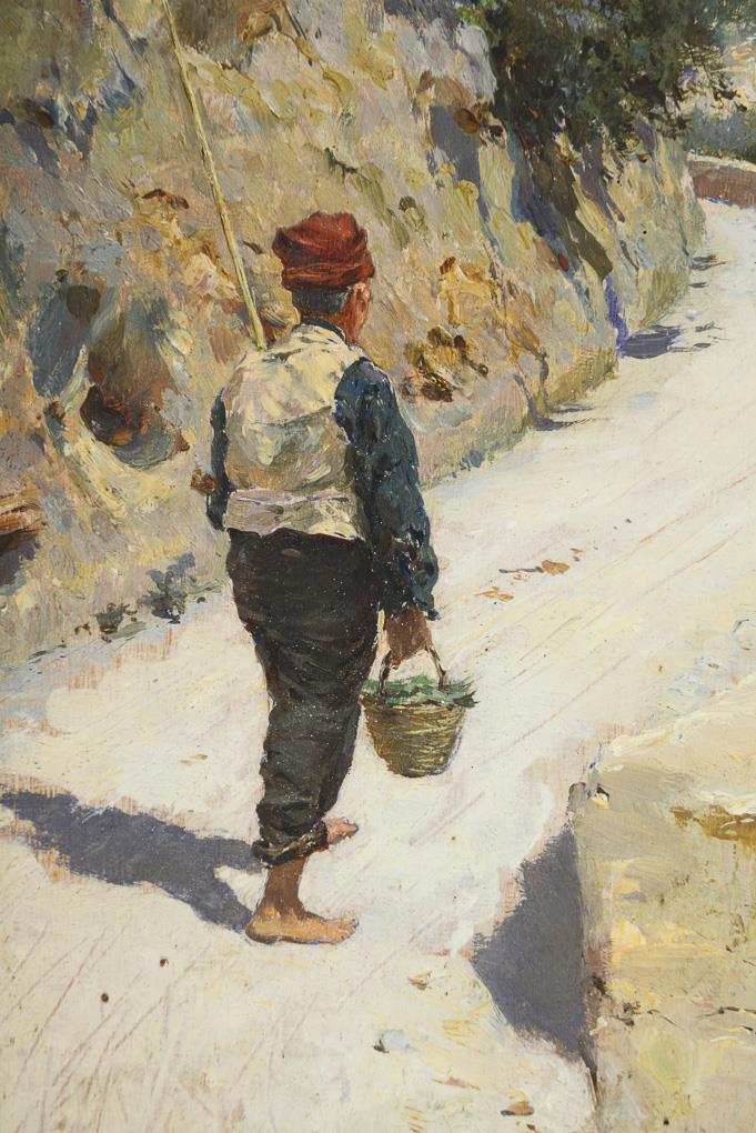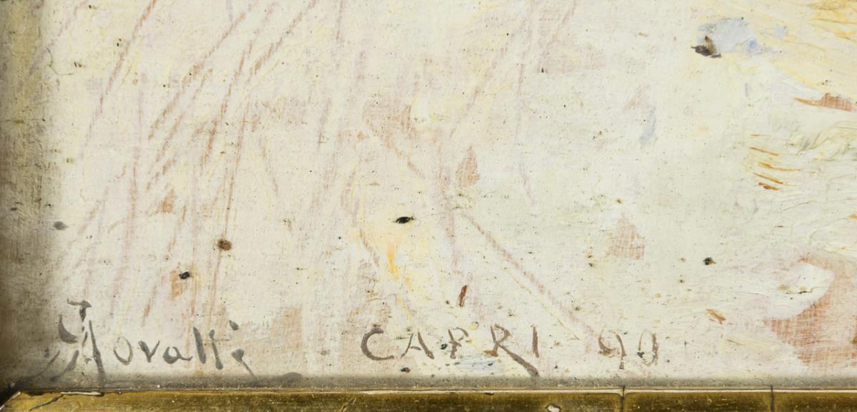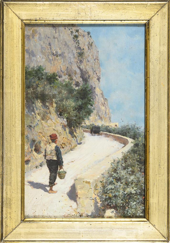 Öl/Malkarton. Links unten signiert mit Zusatz Capri, verso jüngere Ortsangabe "Graf Lovatti Capri Straße nach Anacapri". (18)90.