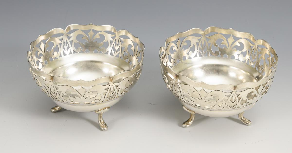 3 runde, floral durchbrochene Schälchen, auf je 3 geschwungenen Füßchen.