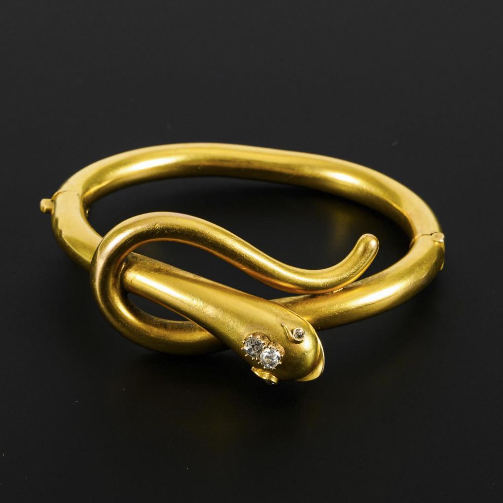 Antiker Schlangenarmreif mit Altschliff-Brillanten, Ende 19. Jh.