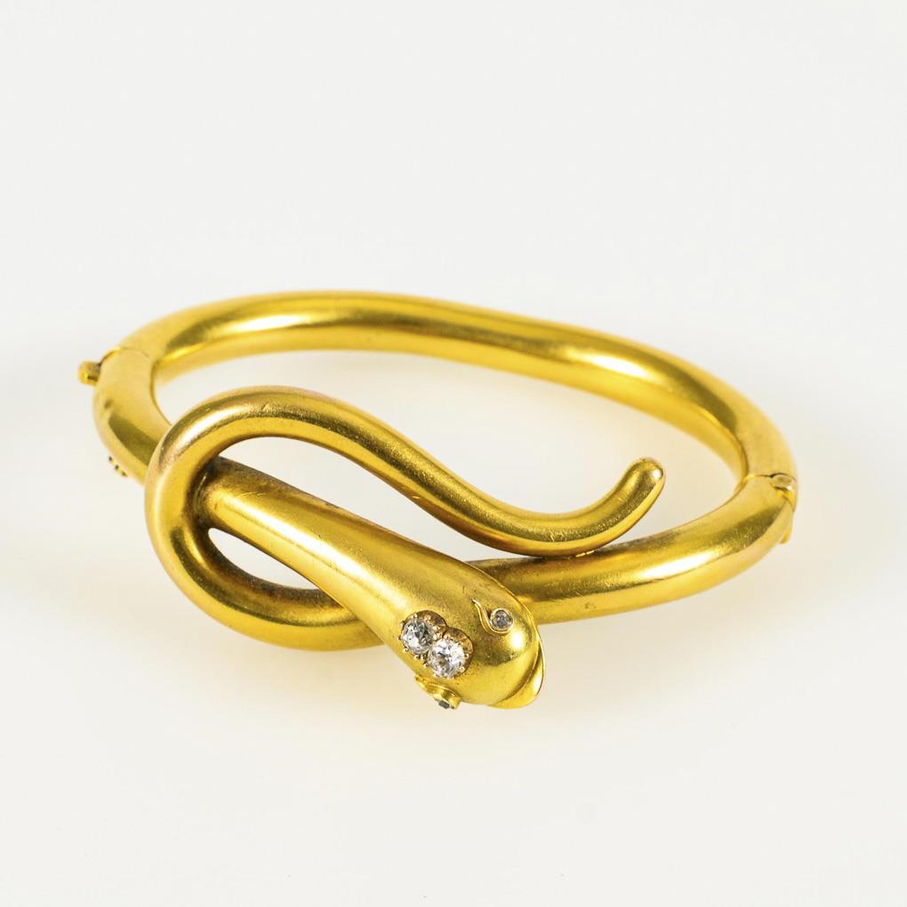 Antiker Schlangenarmreif mit Altschliff-Brillanten, Ende 19. Jh.