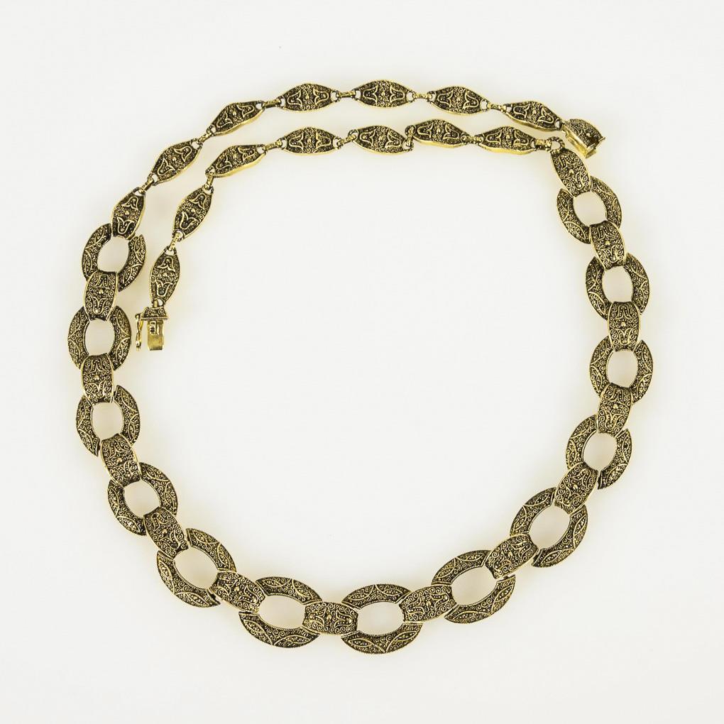 Silber 925 gestempelt, vergoldet. Punzen: TF-Kreispunze, FAHRNER. Ab 1932. L 60 cm. 53,2 g.