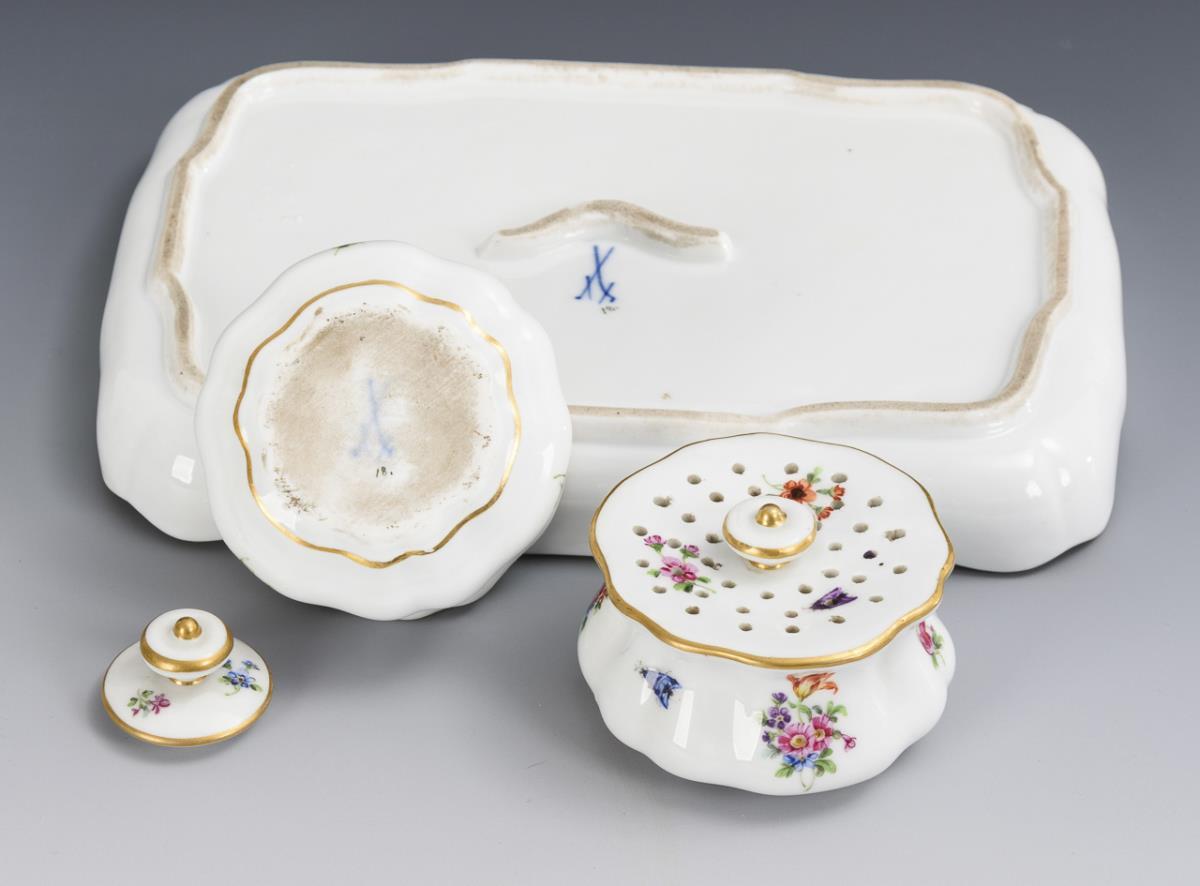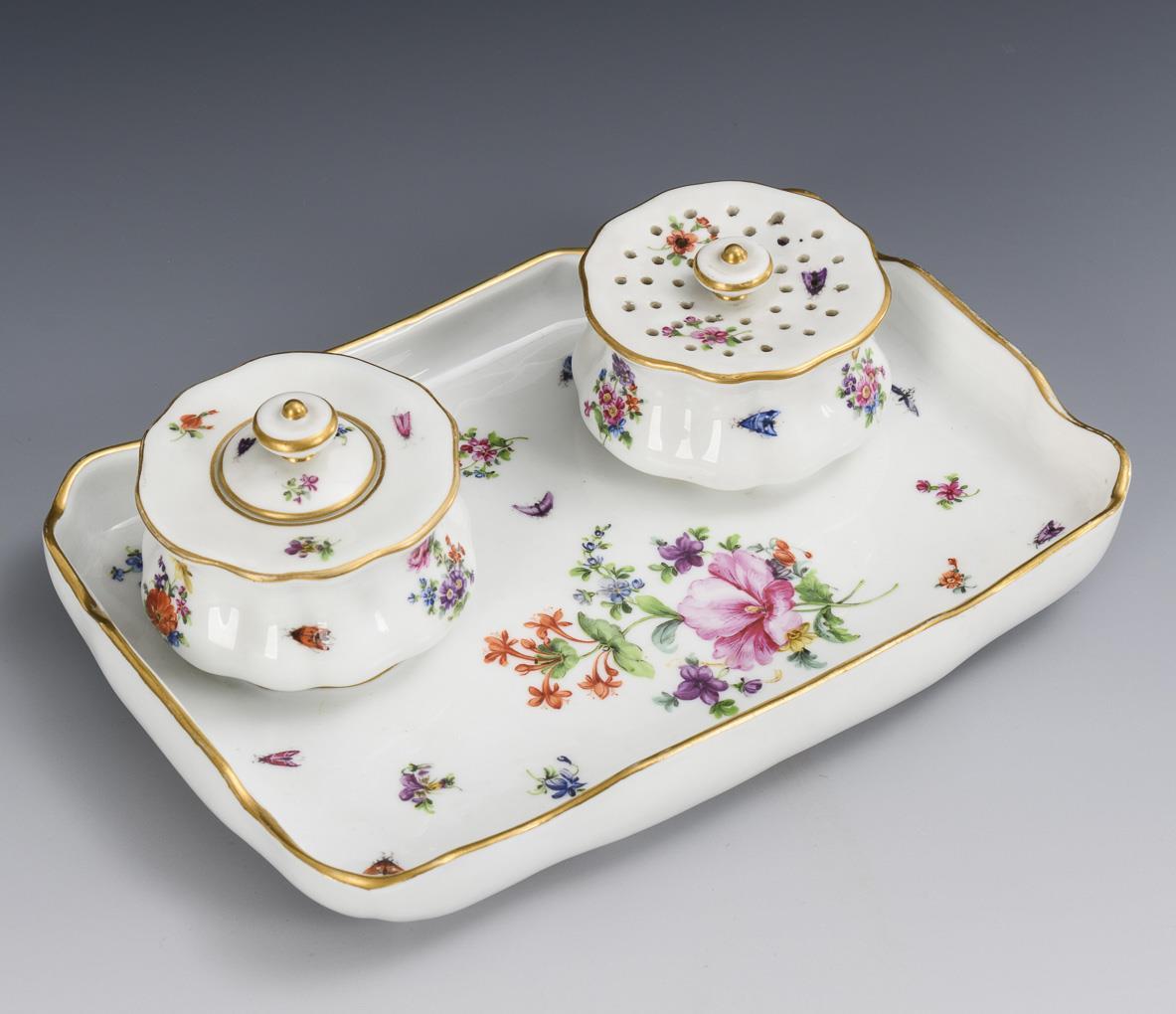Schreibzeug mit Blumen- und Insektenmalerei. Meissen.