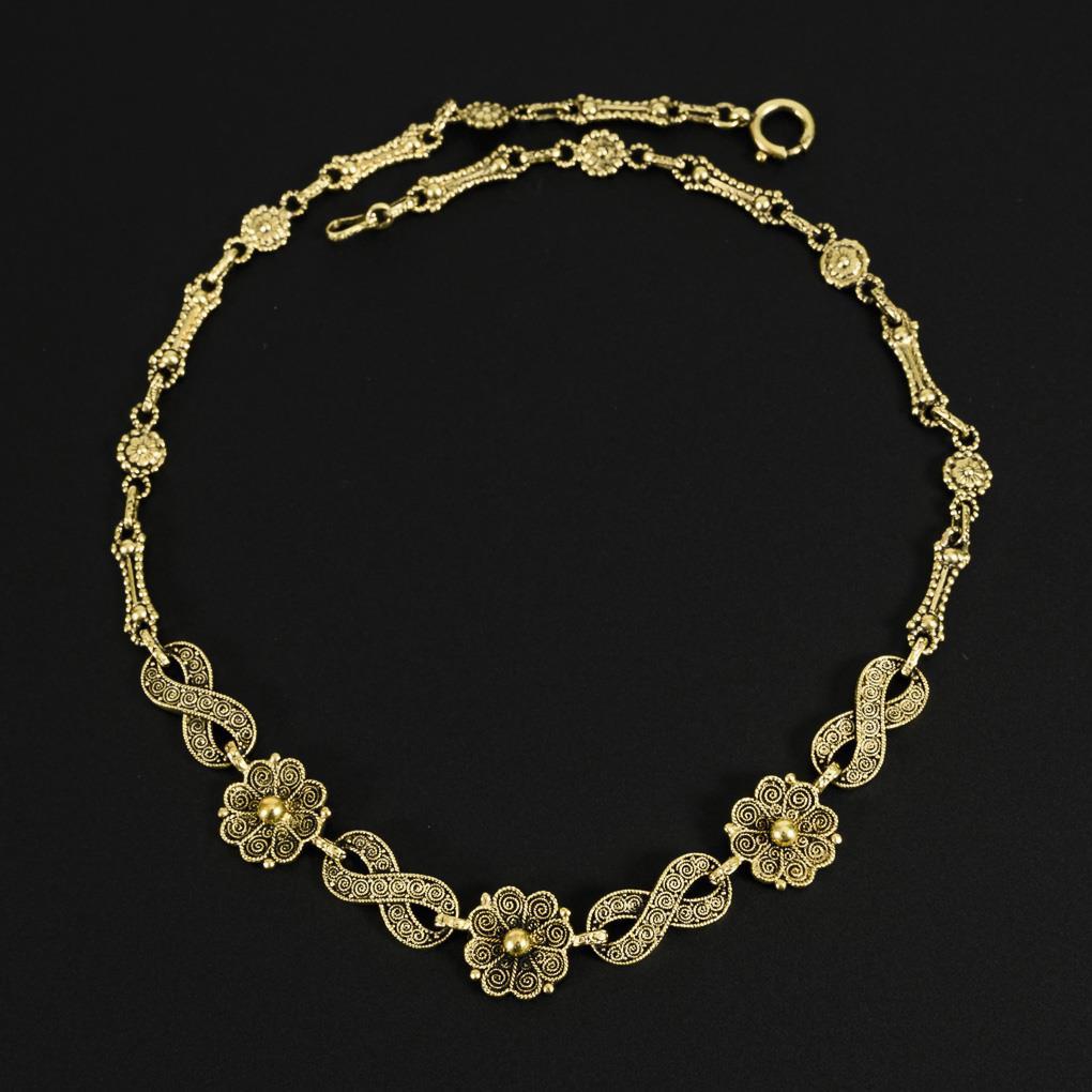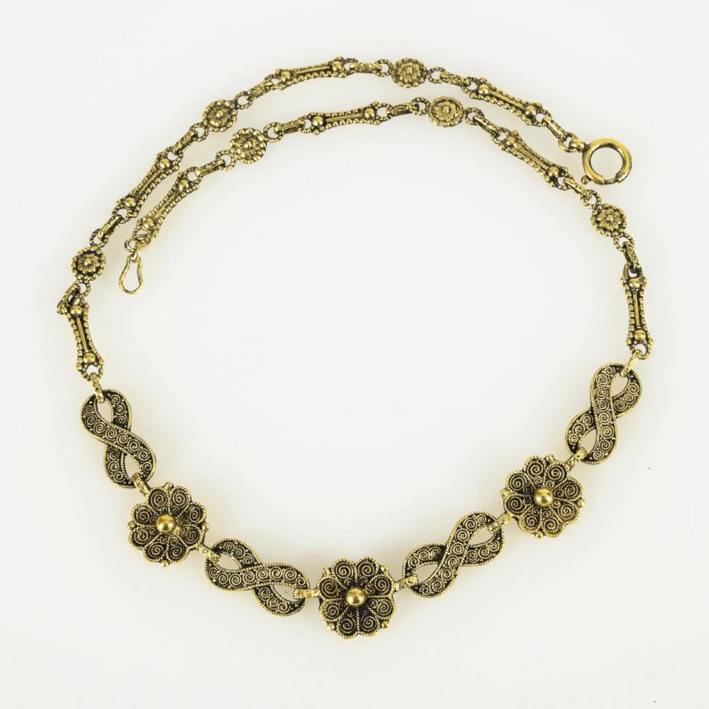 Silber 925 gestempelt, vergoldet. Punzen: TF-Kreispunze. ORIGINAL FAHRNER. Ab 1932. L 42,5 cm. 18,1 g.