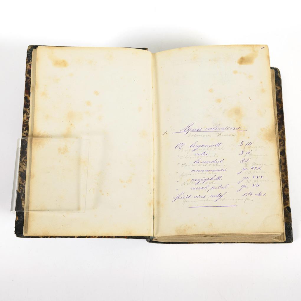 Circa 300 handschriftliche Rezepte, sowie einige Notizen von anderer Hand. Etwa ein fünftel der Seiten beschrieben, der Rest Leerseiten. Halbledereinband.