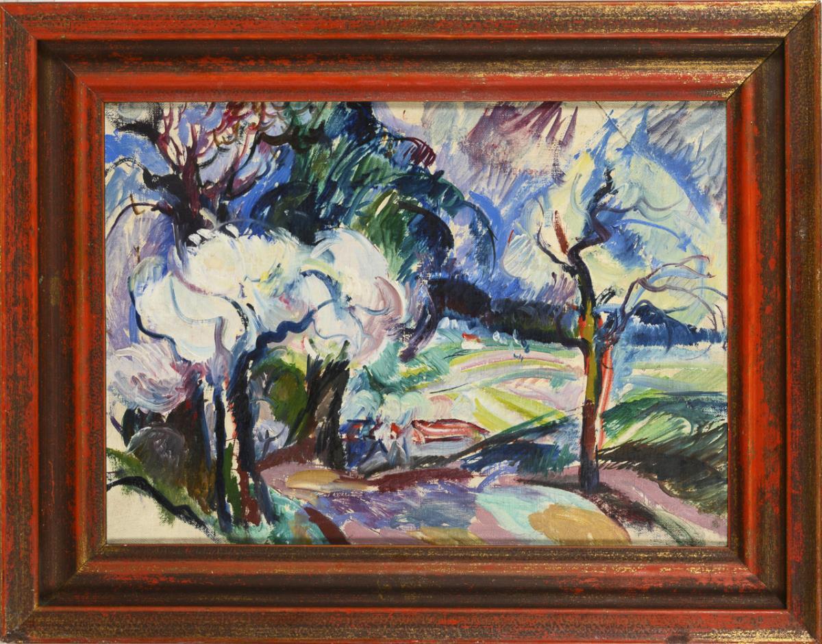 Öl/Leinwand. Unsigniert, verso auf Keilrahmen als "Max Oehler" bezeichnet mit undeutlicher Ortsangabe "Im Dambachsgrund [...] Berka".