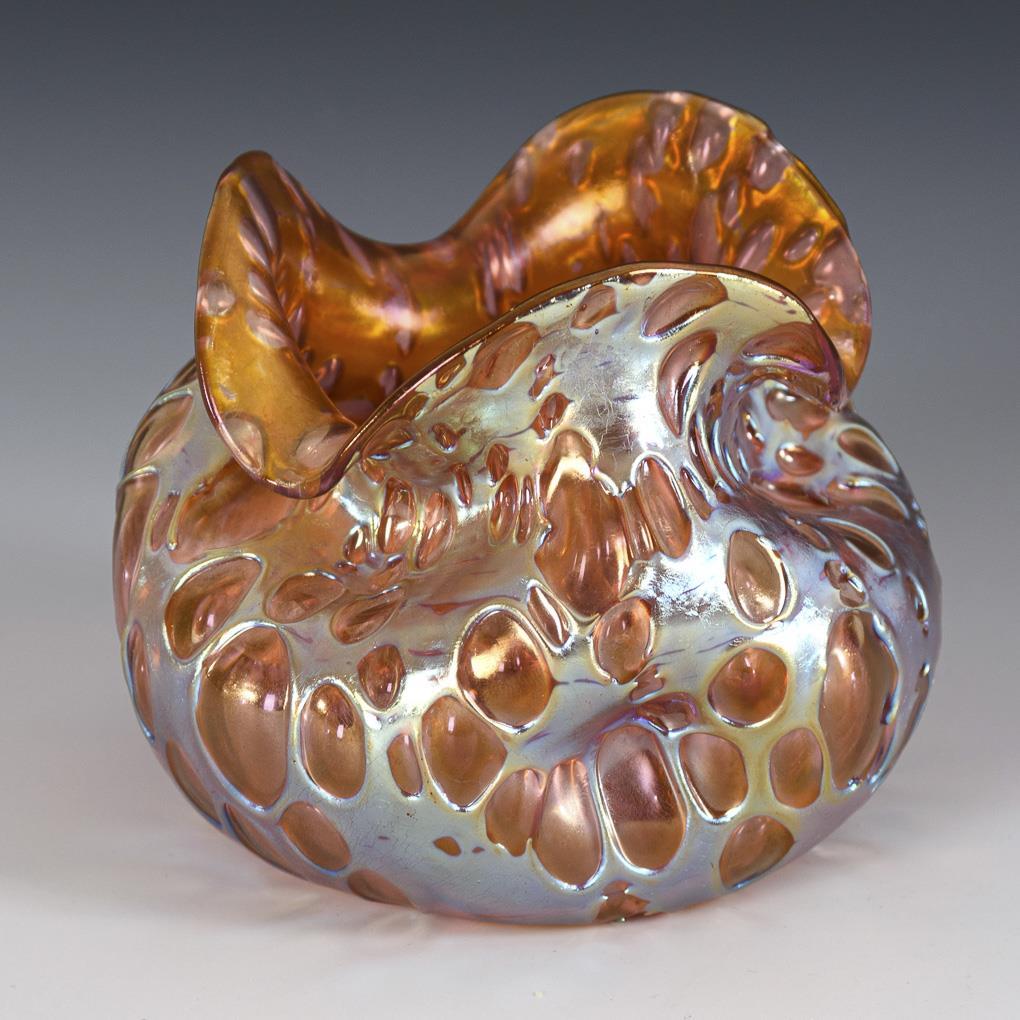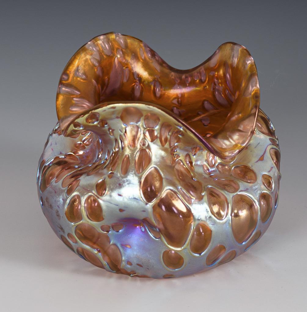 Rosafarbenes Glas, irisiert. H 8,5 cm.