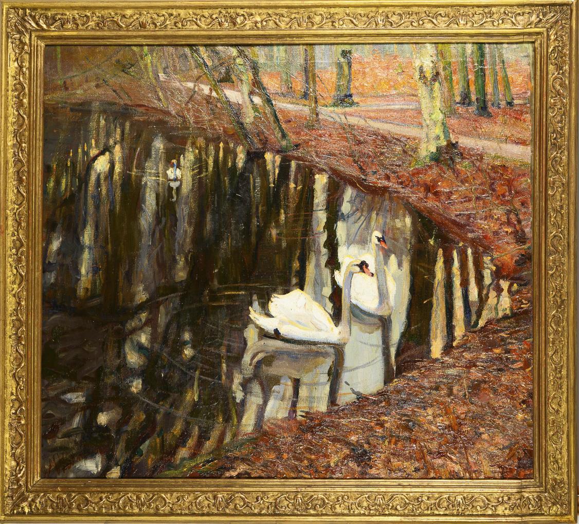 Impressionistische Teichlandschaft mit Schwänen