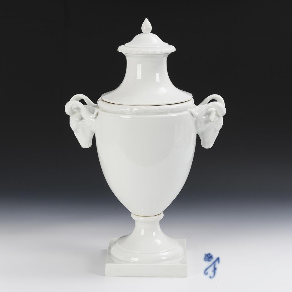 Sie befinden sich hier:   Startseite Kategorien Porzellan Große Deckelamphore mit Widderkopfhandhaben