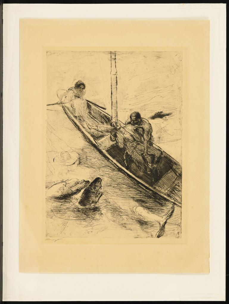 Aus der 1905 bei Bruno Cassirer in Berlin verlegten Folge ″Schwarze Scenen. 6 Radierversuche von Max Slevogt″ von 1904/05. Blatt etwas stockfleckig und lichtgebräunt.