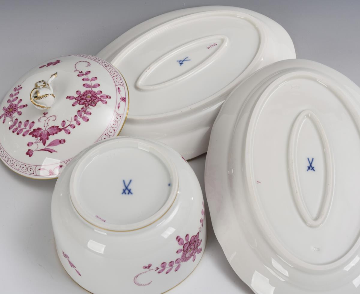Zuckerdose und 2 kleine Platten "Indisch Purpur". Meissen.