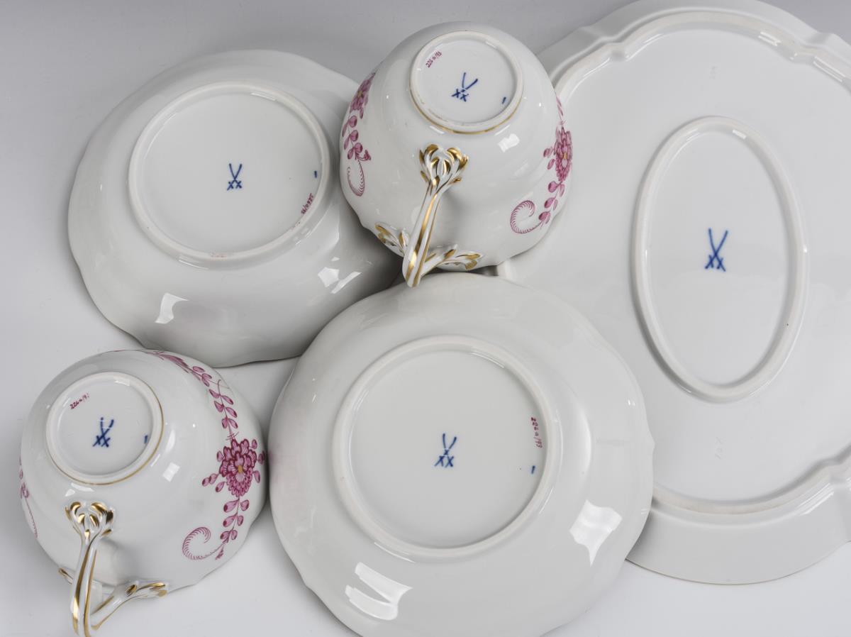 Tablett und 2 Tassen mit Untertassen "Indisch Purpur". Meissen.
