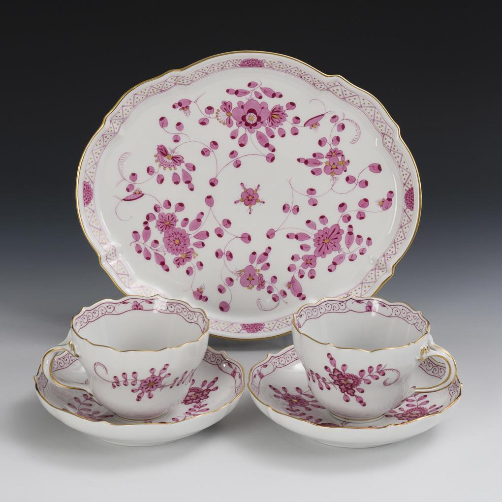 Tablett und 2 Tassen mit Untertassen "Indisch Purpur". Meissen.