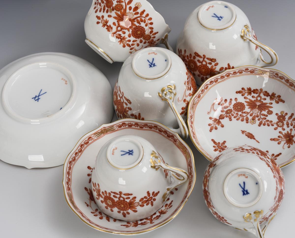 3 + 2 Mokkatassen "Korallenrote indische Malerei". Meissen.