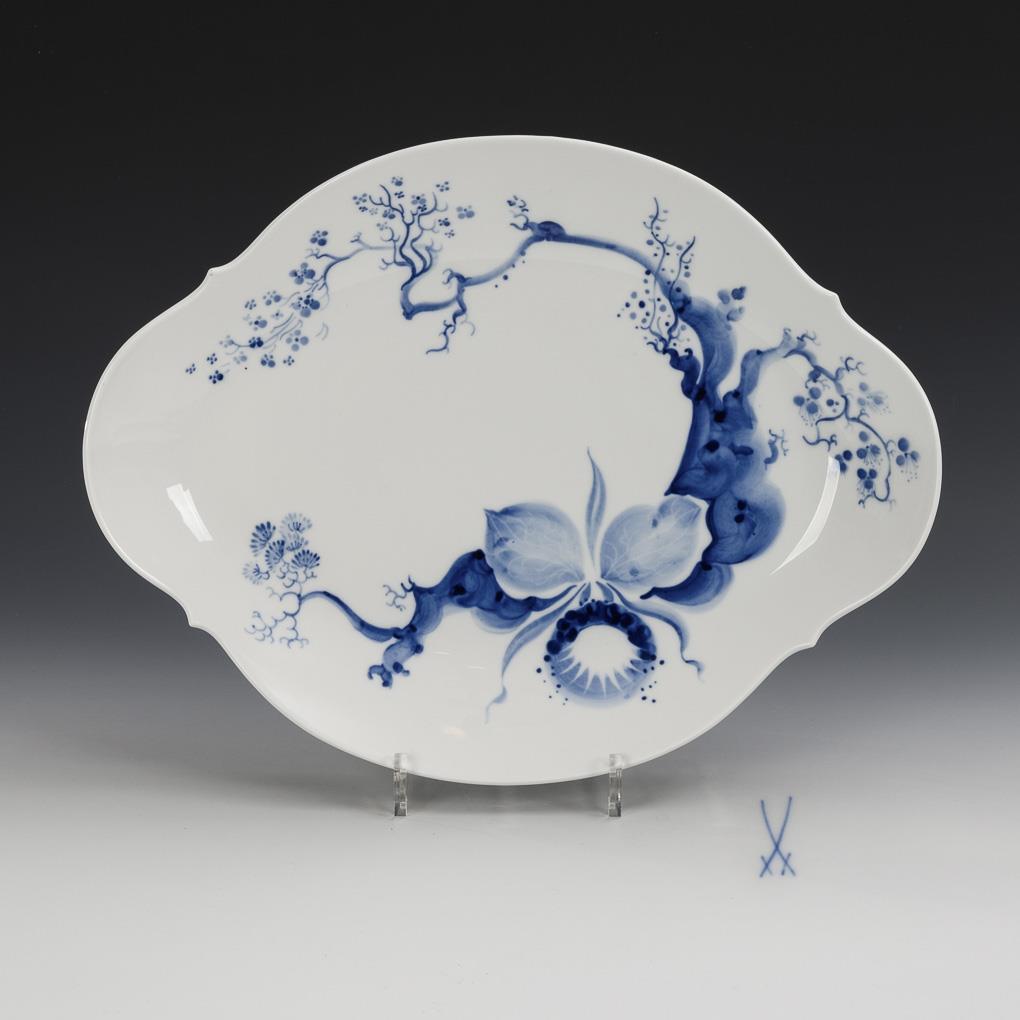 Platte "Blaue Orchidee auf Ast". Meissen.