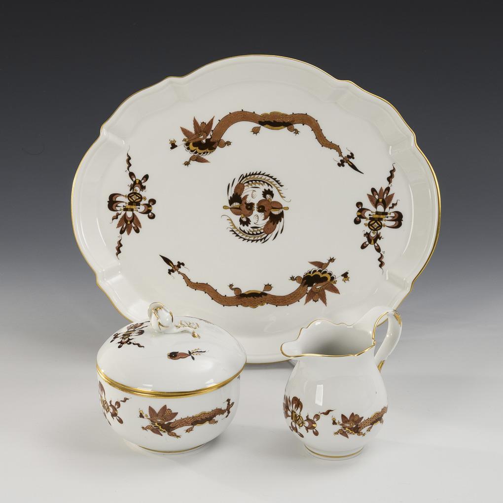 Tablett, Milchkännchen und Zuckerdose "Brauner Drache". Meissen.