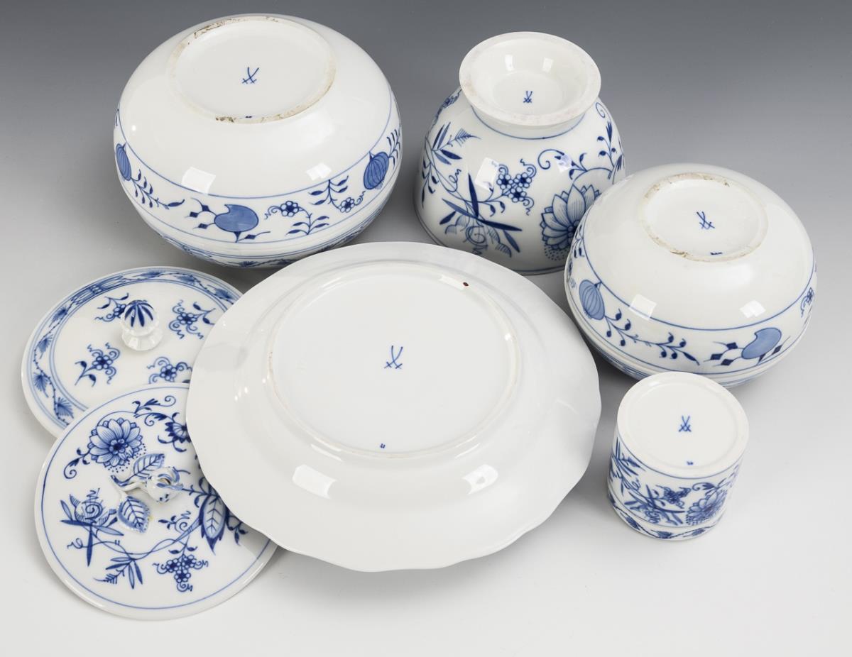 Zwiebelmuster-Butterdose und 4 -Dosen. Meissen.