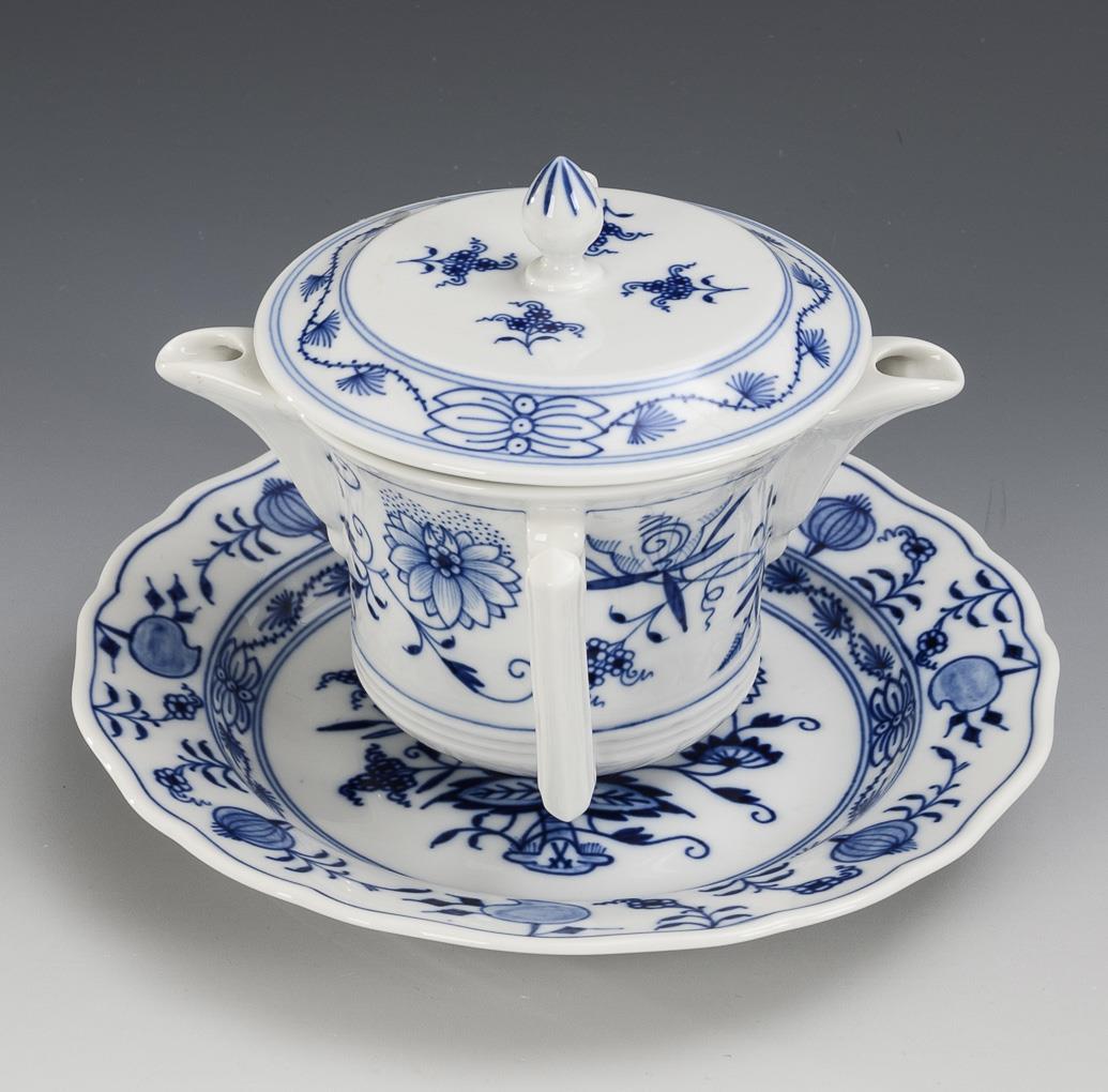 Zwiebelmuster-Sauciere und -Teller. Meissen.
