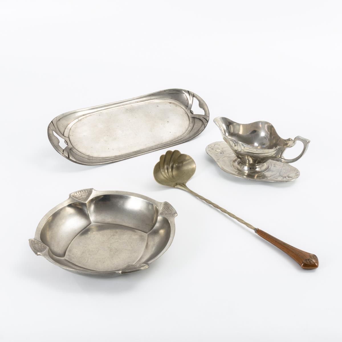 4 Teile Jugendstil-Zinn. 2x Orivit, 1x Bingit.