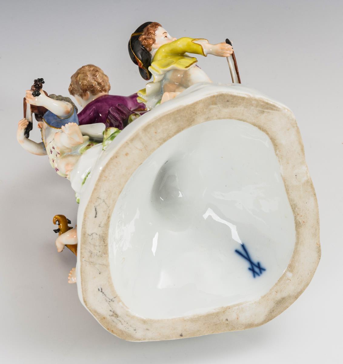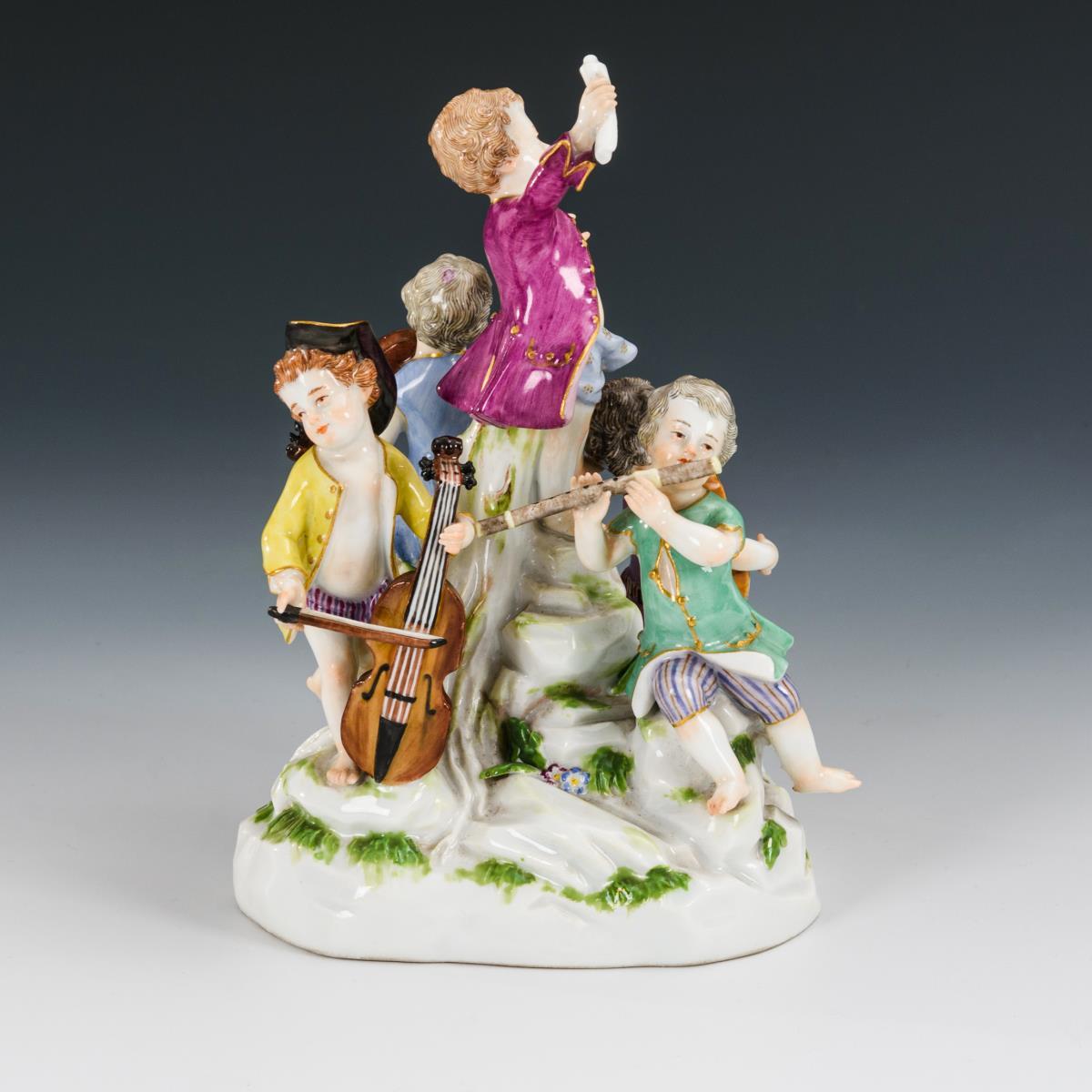 Fünf musizierende Putten auf einem Natursockel. 1 Bogen bestoßen, 1 Lautenwirbel fehlt.